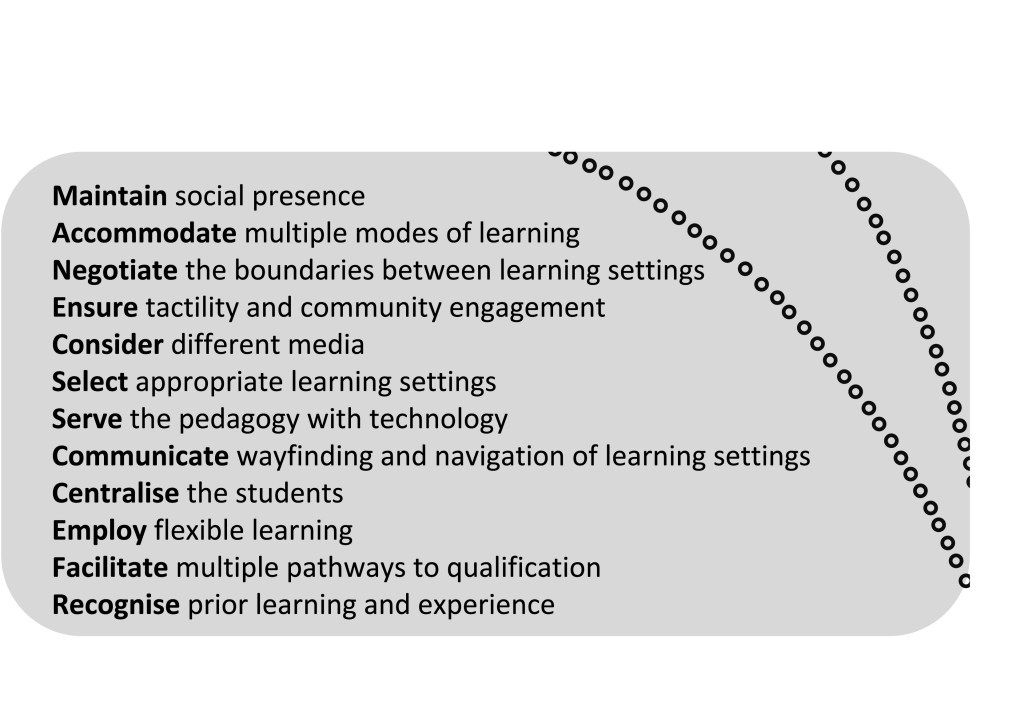 It expands on the Inclusive Excellence Framework to include physical, pedagogic, and cultural spaces, as well as time. highlighting the importance of considering multiple modes of learning, including online and on-ground, to create a sense of community and belonging. Also mentions the need to consider power dynamics in physical spaces and how to preserve the critical aspects of the architectural design studio in a virtual environment.