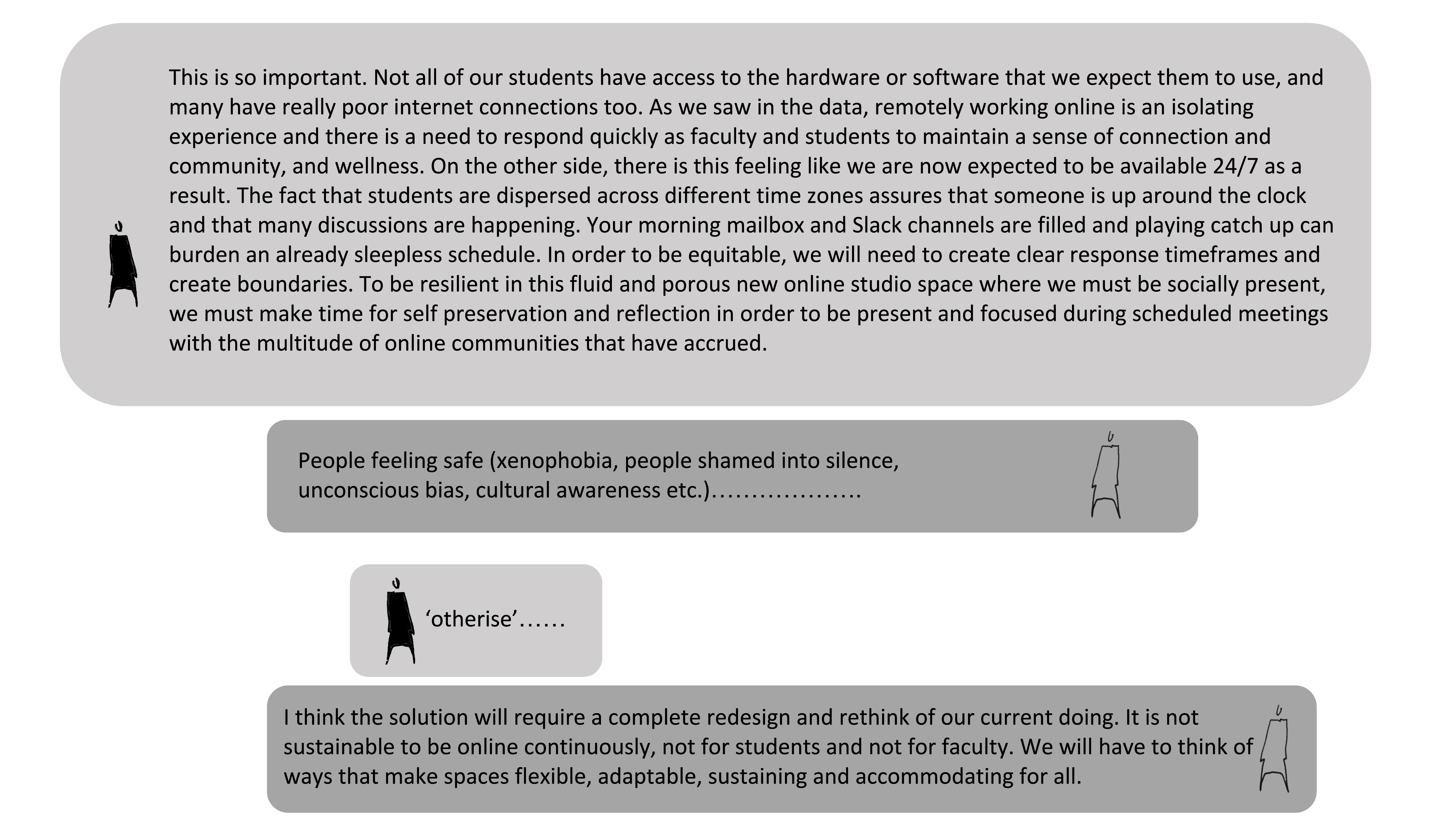 Auto-ethnographic conversations by authors during Covid, and architectural education online: