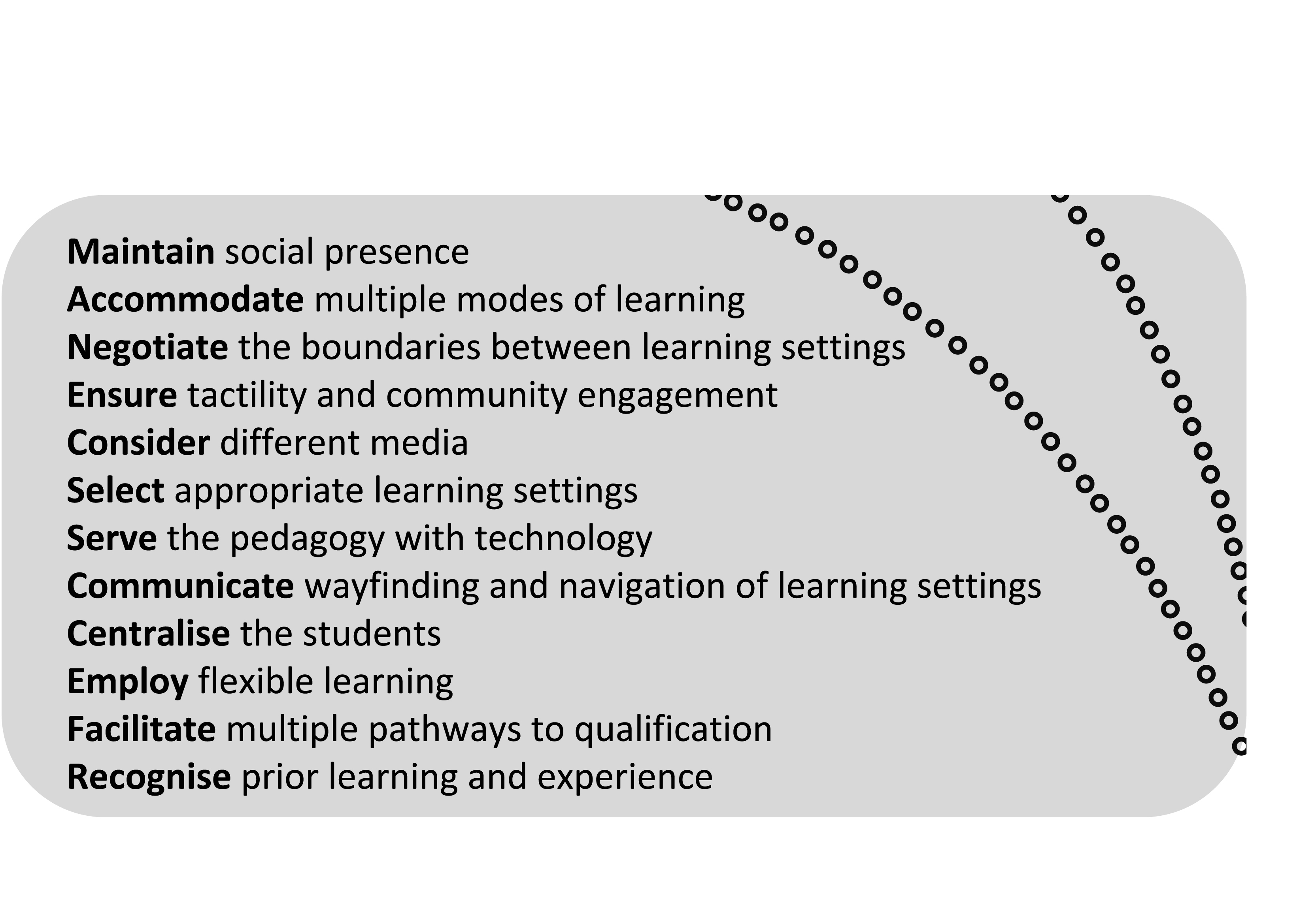 It expands on the Inclusive Excellence Framework to include physical, pedagogic, and cultural spaces, as well as time. highlighting the importance of considering multiple modes of learning, including online and on-ground, to create a sense of community and belonging. Also mentions the need to consider power dynamics in physical spaces and how to preserve the critical aspects of the architectural design studio in a virtual environment.