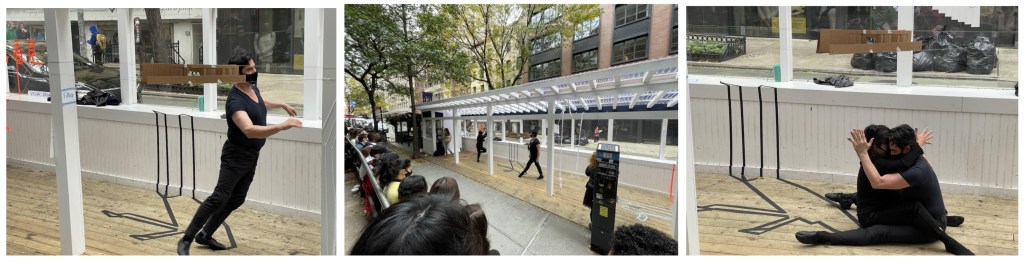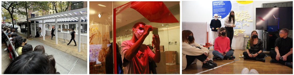 A major pivot point for the class happened when all the students were able to work in person and a pair of dancers performed reacting through interpretive movements to student installations. Seeing the kinesthetic feedback was an energizing way to see how interventions in the built environment can expand conversations beyond language.