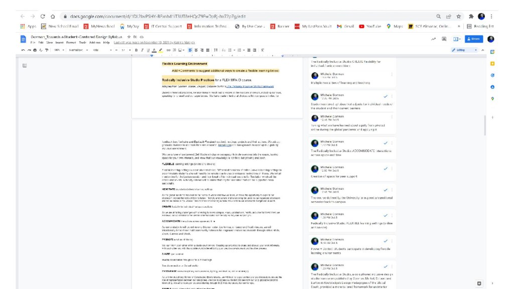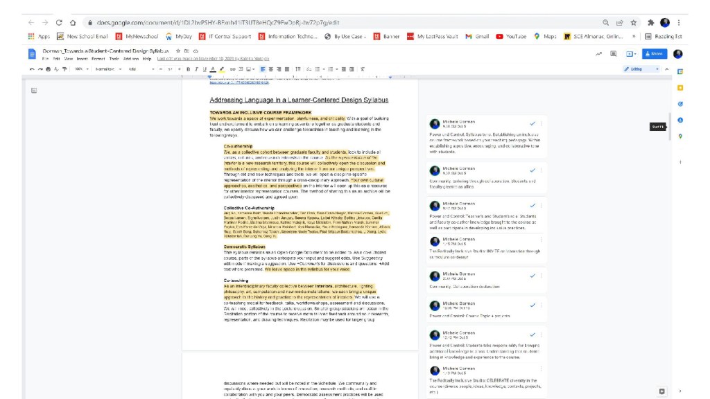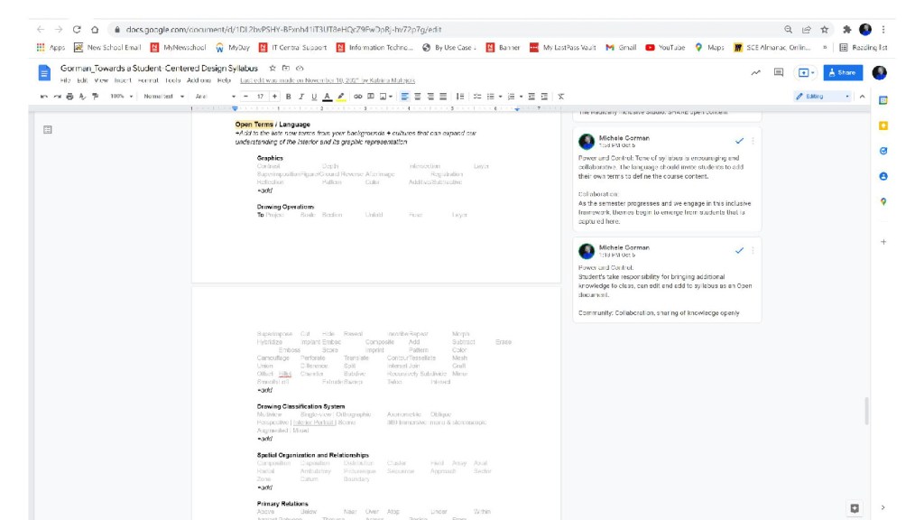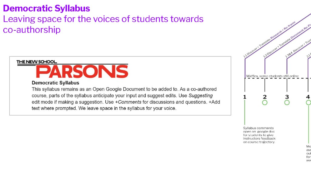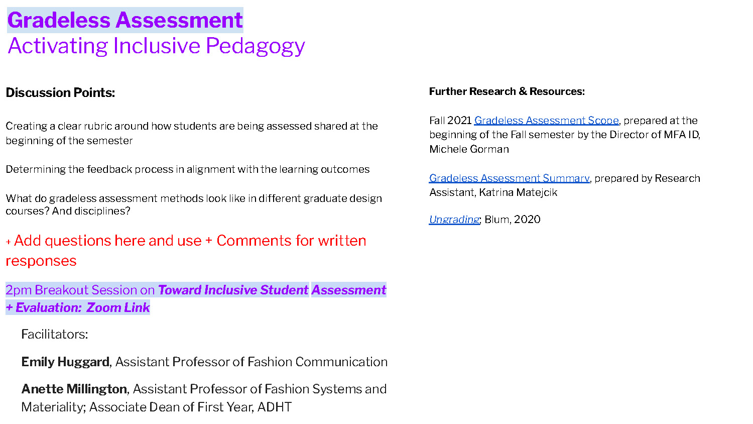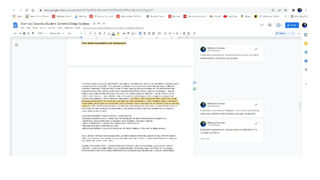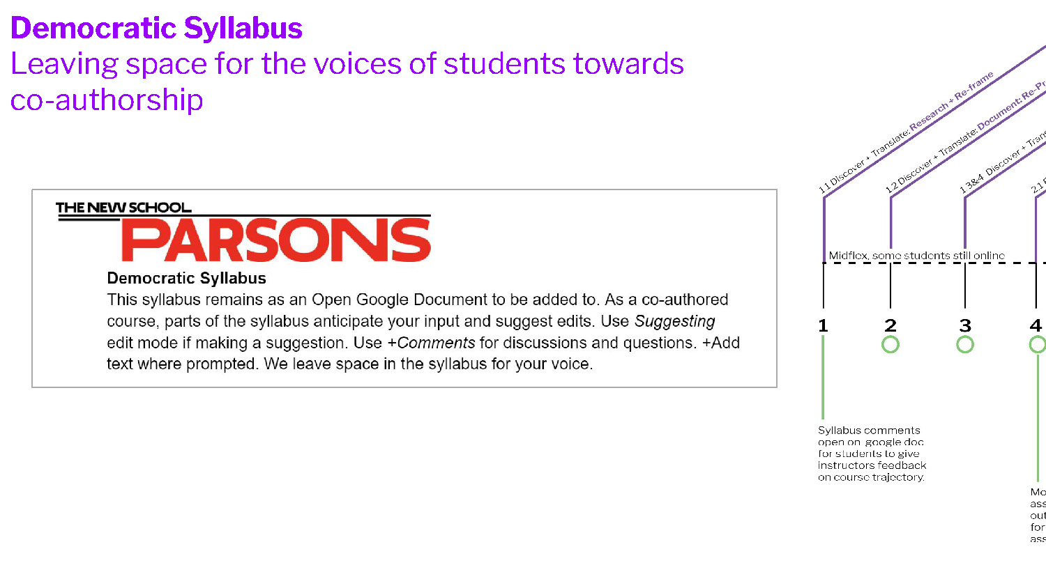 If you would like to know more details about the process and conclusions from the gradeless assessment pilot, feel free to reach out directly to Michele Gorman gormanm@newschool.edu and Research Assistant Katrina Matejcik, matek062@newschool.edu.