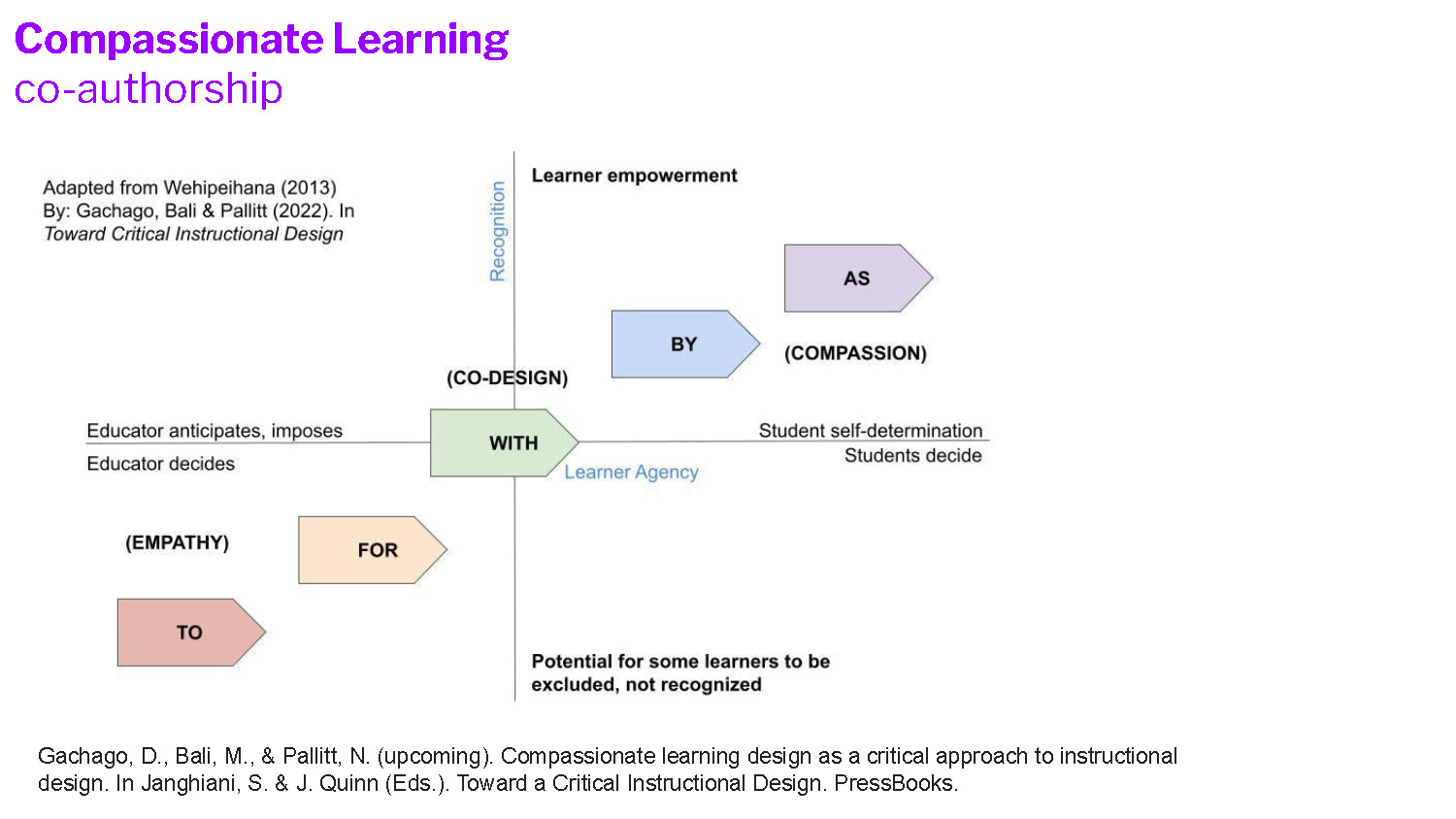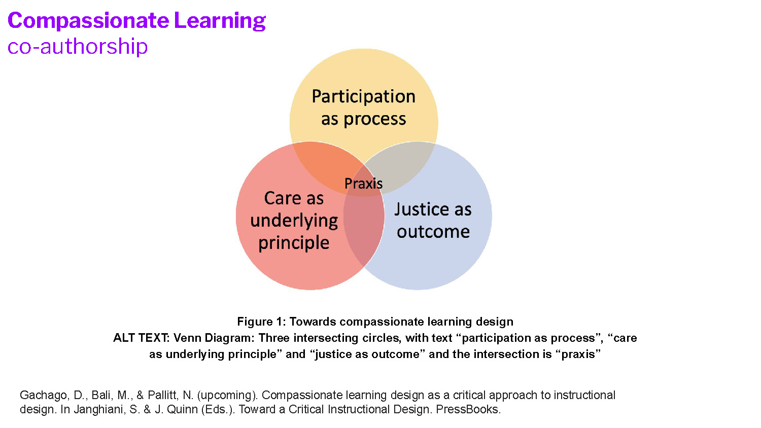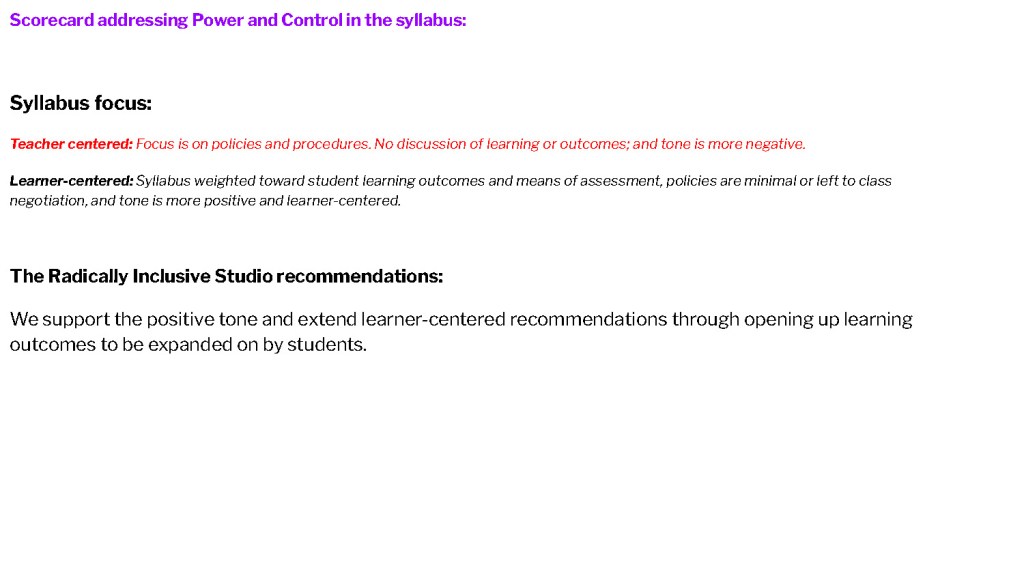 At the graduate level, we are interested in working with our students as collaborators, in a spirit of experimentation and opening up new research territories. Grades have been documented as reinforcing hierarchies within the classroom, placing judgment and rating over discussion, meaningful feedback and learning (Ungrading; Blum, 2020). The process of grading in assessment results in students working towards a grade, seeking approval from their professor instead of engaging in the learning process. Instead, focusing on meaningful feedback gives graduate students more agency in guiding their own research. Students are able to take risks and weigh feedback from a number of perspectives, building experience in decision making to build confidence in self-guiding their own research.